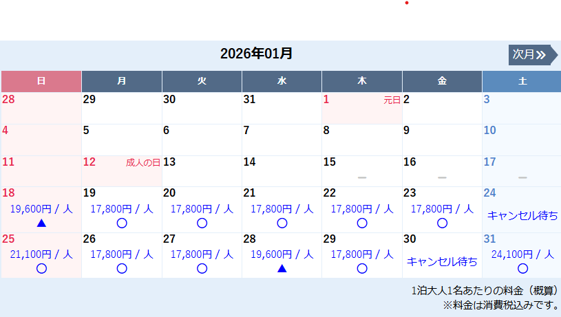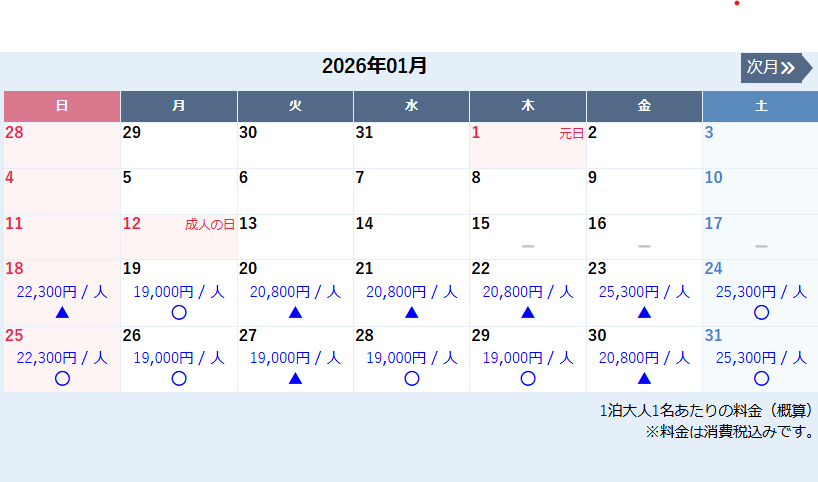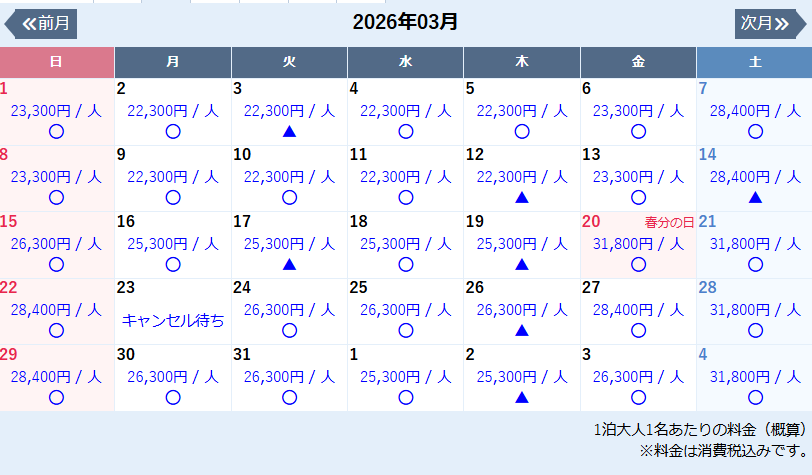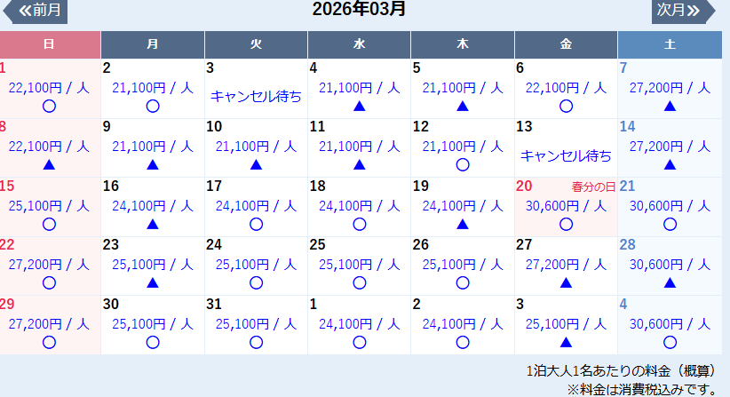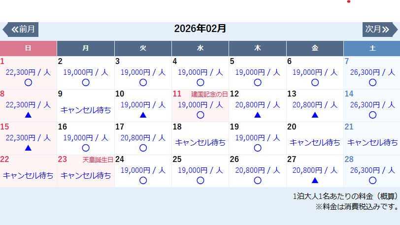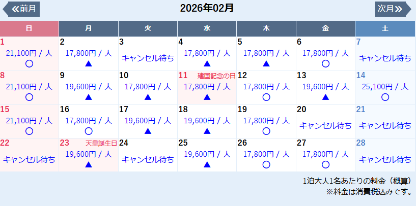 土日祝祭日のご予約時の価格はお問い合わせください。